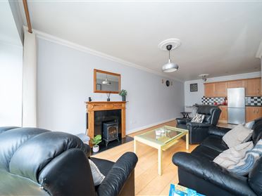 Stunning two bedroom mid terrace home with a double height extension and a west facing courtyard in a much sought after location. This charming property features a gated cobblelock driveway leading to an attractive facade. The entrance hall has a tiled floor and leads to a spacious living room with a solid fuel fireplace, semi-solid floors, understiars storage and alcove shelving. The open plan dining area and kitchen extension enjoys a tiled floor, shelving and a clever utility space hidden behind sliderobes. The eye catching L shaped kitchen boasts spplashback tiling and plenty of counter & cupboard space. The West facing courtyard is ideal for enjoying those long summer evenings and has rear pedestrian laneway access. Upstairs consists of two double bedrooms and two bathrooms. The family bathroom has a tiled floor, subway tiled walls, an electric shower, a Velux window and also incorporates the hotpress. The first double bedroom is located at the front of the home and features carpet flooring, sophisticated fitted wardrobes, an ornate fireplace and a walk-in-wardrobe. The shower room has a tiled floor, glass block walls and a towel radiator. The second bedroom located at the rear of the home is currently set up as a home office and comes with comfy carpet and ornate coving. The attic is accessed via the landing. Kickham Road is ideally located between the villages of Inchicore & Kilmainham. There are a range of shops, bars, cafes and restaurants on your doorstep. The Phoenix Park, Grand Canal, Memorial Gardens, Royal Hospital & IMMA are all located in the area. The Red Line LUAS and Dublin Bike Station are a short stroll away making the city centre easily accessible. The new children's hospital at St. James's is also within walking distance.